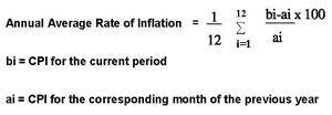 Annual Average Rate of Inflation The average rate of inflation is computed monthly CPI growth rate within a year taking 12 month of year, according to the following formula: